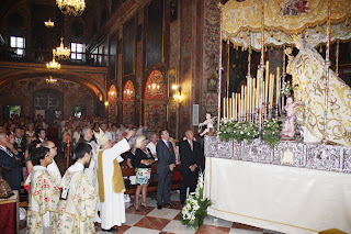 Juan Dobado- El día 15, con la Iglesia conventual de San Cayetano repleta de fieles, presidió la Solemne Novena el Sr. Obispo de Córdoba D. Demetrio. El Prelado alabó los cultos tan solemnes y la altísima participación de fieles durante toda la Novena, tal como se lo señalaron los canónigos que presidieron los días anteriores.