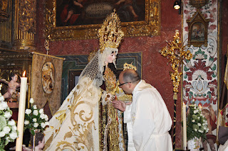Juan Dobado- Son las palabras de una señora al bajar del presbiterio y besar la mano del Reina Coronada del Carmen de San Cayetano: "Es un trocito de cielo", con las lágrimas en sus mejillas.