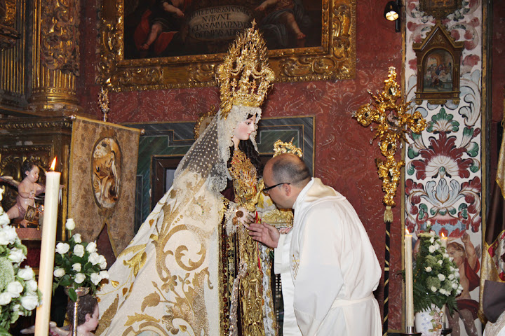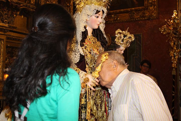 Os mostramos estas instantáneas de Rafa Parejo sobre el Besamanos del Carmen Coronada de San Cayetano, al finalizar el día 8 de la Solemne Novena. Son días en los que la feligresía fiel de San Cayetano y tantos devotos de la ciudad no quieren perderse ese "cara a cara" con la Hermosura del Carmelo.